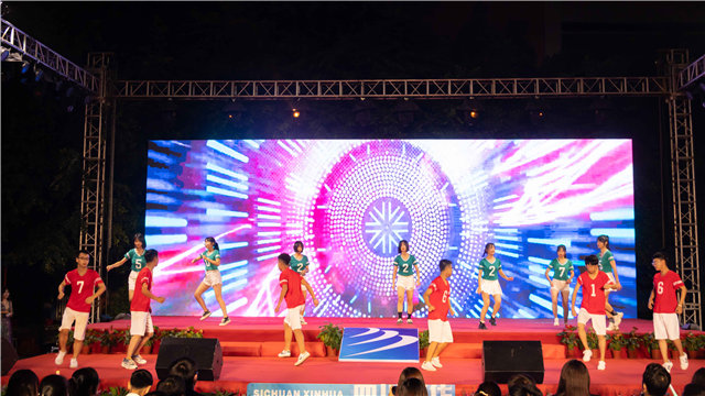 四川新华电脑学院在学院操场举办“歌唱祖国 圆梦新华” 庆祝中华人民共和国成立70周年暨2019级新生开学典礼文艺晚会,全校两千余师生欢聚一堂,载歌载舞,唱响青春,告白祖国。