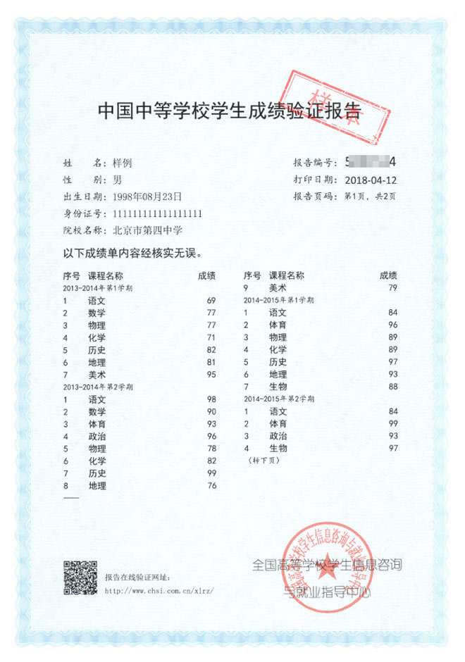 1、《中等学校学生成绩报告》是针对境外高校招生和学生申请出国留学而提供的国内教育背景调查信息服务;